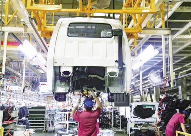 7月12日,工人在位于青州市的江淮汽车山东分公司流水线上生产作业。日前,中国汽车工业协会公布的数据显示,汽车行业已经走出4月份的最低谷,6月产销表现好于历史同期。王继林摄(经济日报7月14日8版)