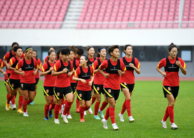 当日,中国女足在青岛国信体育场举行媒体开放日活动。据了解,6月11日以来,中国女足在青岛集训备战东亚杯足球锦标赛,将于7月17日从青岛直接飞赴日本名古屋参赛。目前,已有累计超过35名球员抵达青岛参加训练。新华社记者 李紫恒摄