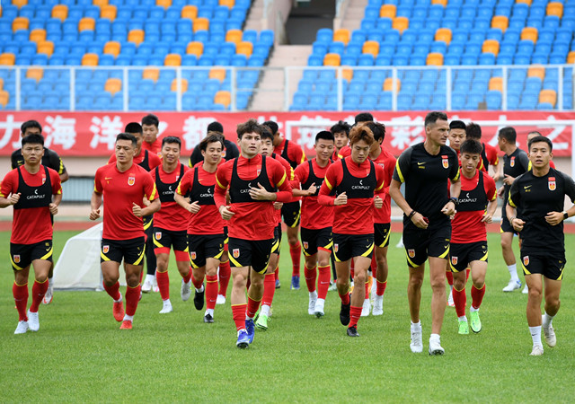 当日,中国国家男子足球选拔队在青岛天泰体育场进行训练,备战即将举行的东亚杯足球锦标赛。新华社记者 李紫恒摄