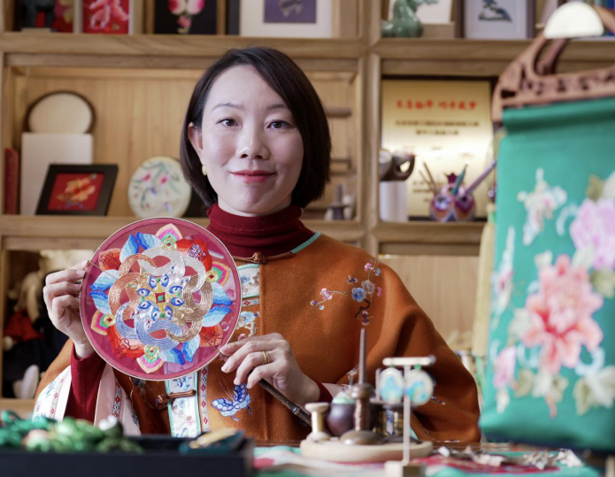 2024年,曾是游戏原画设计师的刘晓燕,毅然回到家乡房山区周口店镇良各庄村。她下定决心创办京绣工坊,一是源于自儿时起便深埋心底、从求学到工作始终未曾放下的京绣情怀;二是心疼儿时伙伴大多赋闲在家,盼为她们寻一条家门口的增收路;更因家乡周口店龙骨山上出土的骨针文化,让她深感肩负着传承指尖技艺、延续千年文脉的使命。