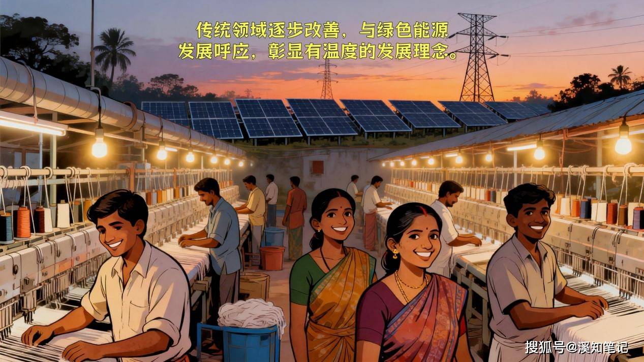一边是缝纫机旁无数劳动者对安全尊严的朴素渴望,一边是拉贾斯坦邦荒漠中光伏板阵列在朝阳下泛起的蓝色光晕。